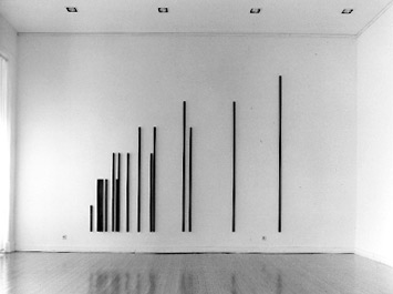 "Progression gegen Unendlich mit 15°, 18°, 22,5°, 30°, 45° - vertikale Parameter" 1987/88 300 x 365,5 x 3 cm Stahl