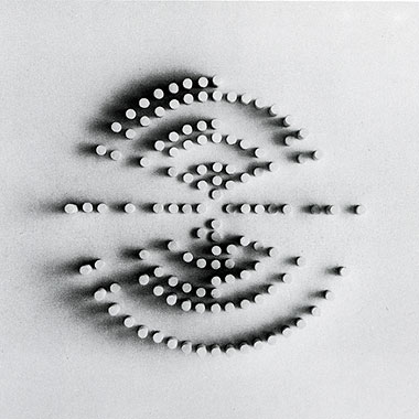 "Relief - Serielle Konstruktion auf den Schnittpunkten von Kreisen und Geraden" 1960 48 x 48 x 9 cm Holz, Lack