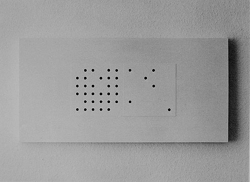 "Relief 6 Punkte 1,4,9,16,25,36" 1959 40 x 80 x 4 cm Holz, Karton, Lack Sammlung Stiftung für konkrete Kunst, Reutlingen